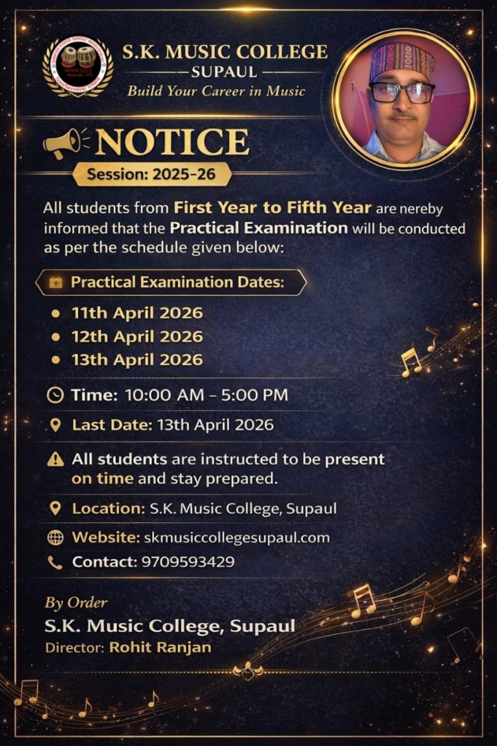 * Higher Education: If a student has passed the 12th grade and had Music or Fine Arts as a subject, pursuing a B.A. (Bachelor of Arts) or B.Ed. will be even easier for them.